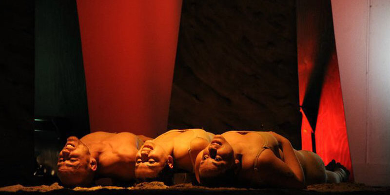 Tre attori all’interno di un quadrato portano avanti il filo drammatico della leggendaria storia romana, con ritmi, danze e quadri plastici.